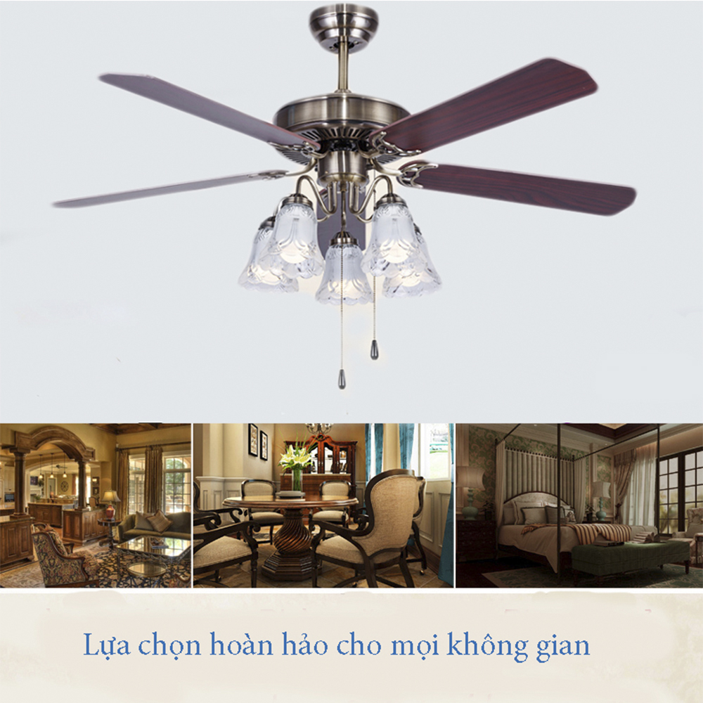 Quạt trần đa chức năng 5 cánh gỗ đèn chùm điều khiển từ xa QAT002 – Kiểu dáng cổ điển và sang trọng