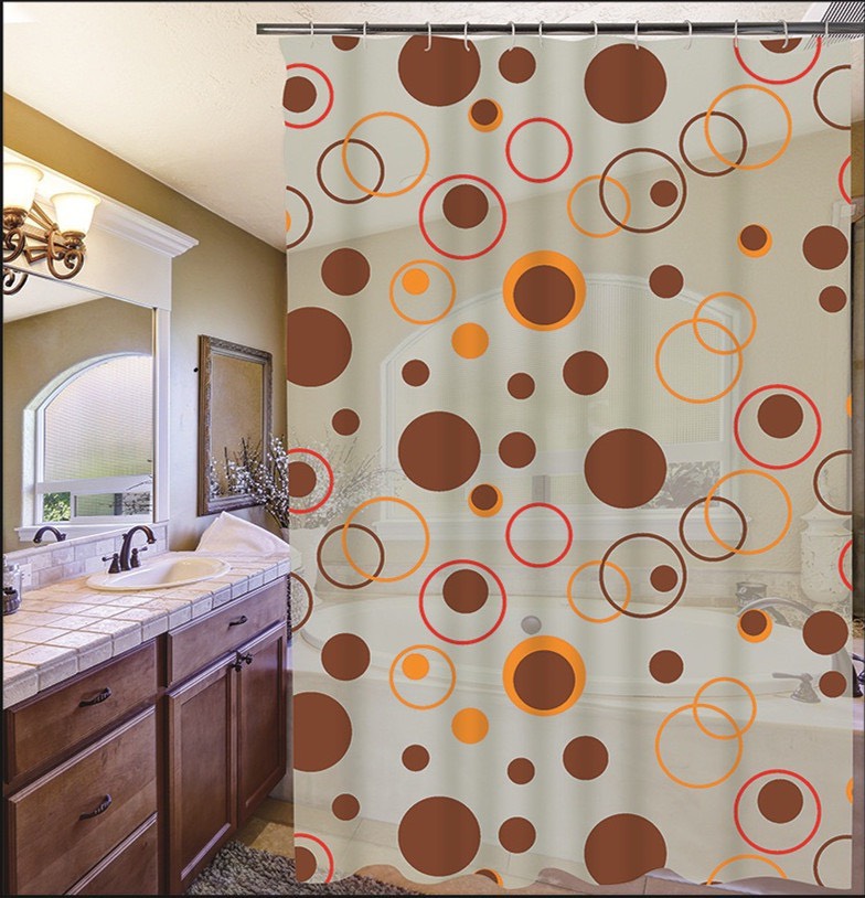 Rèm Phòng tắm PEVA không thấm nước 1.8m chấm tròn nâu bự