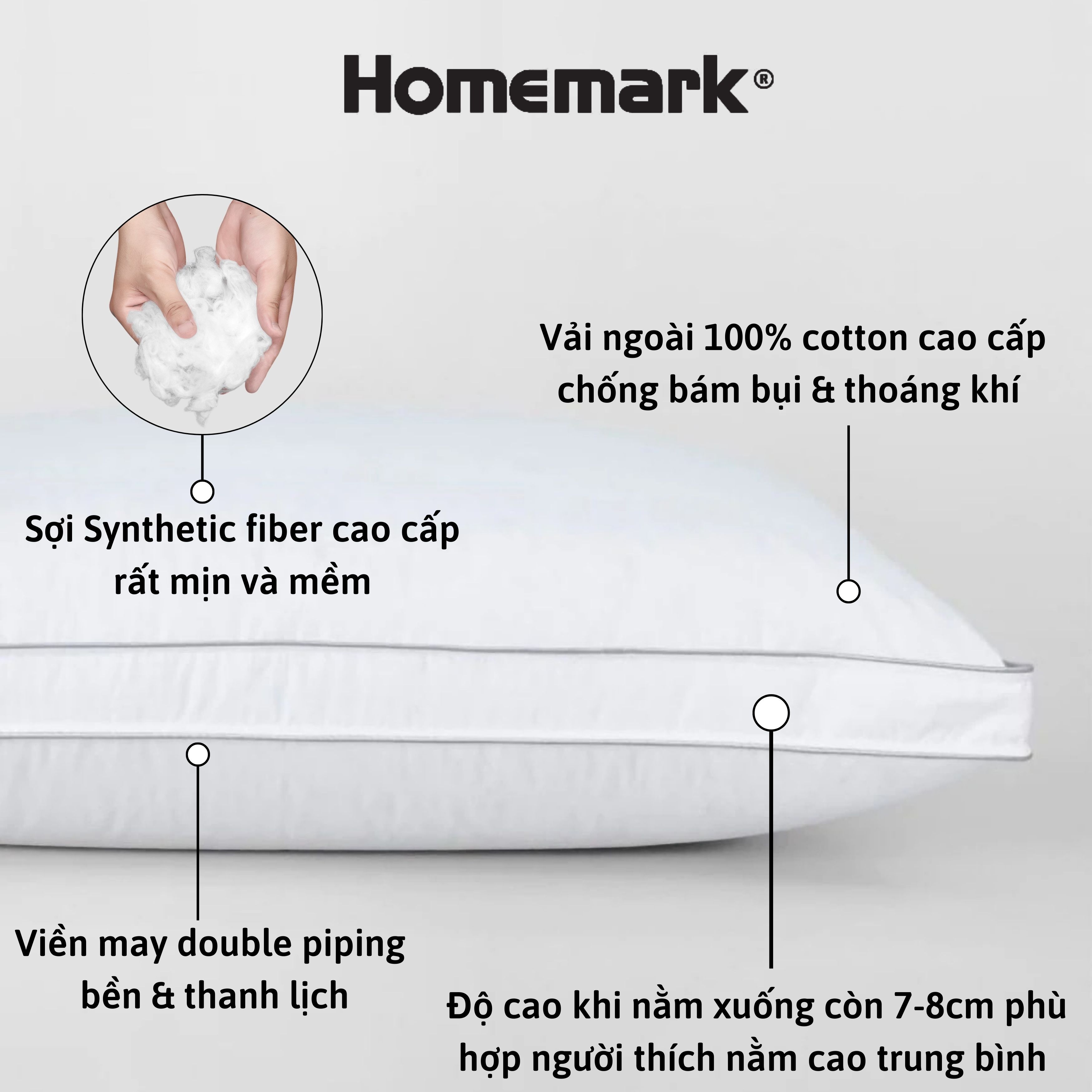 Ruột gối Premium Homemark siêu êm lông vũ nhân tạo synthetic fiber (kích thước 50x70cm*1100gram) là lựa chọn hoàn hảo cho giấc ngủ êm ái và thoải mái. Sản phẩm được thiết kế với lớp vải bọc ngoài làm từ 100% cotton T250, có khả năng chống bám bụi và chống bẩn, giúp duy trì sự sạch sẽ và bền bỉ theo thời gian. Bên trong ruột gối là sợi tổng hợp cao cấp, với cấu trúc 1.33D*32mm x 3D*64mm, mang lại độ mềm mại như lông vũ tự nhiên nhưng không gây kích ứng cho làn da.