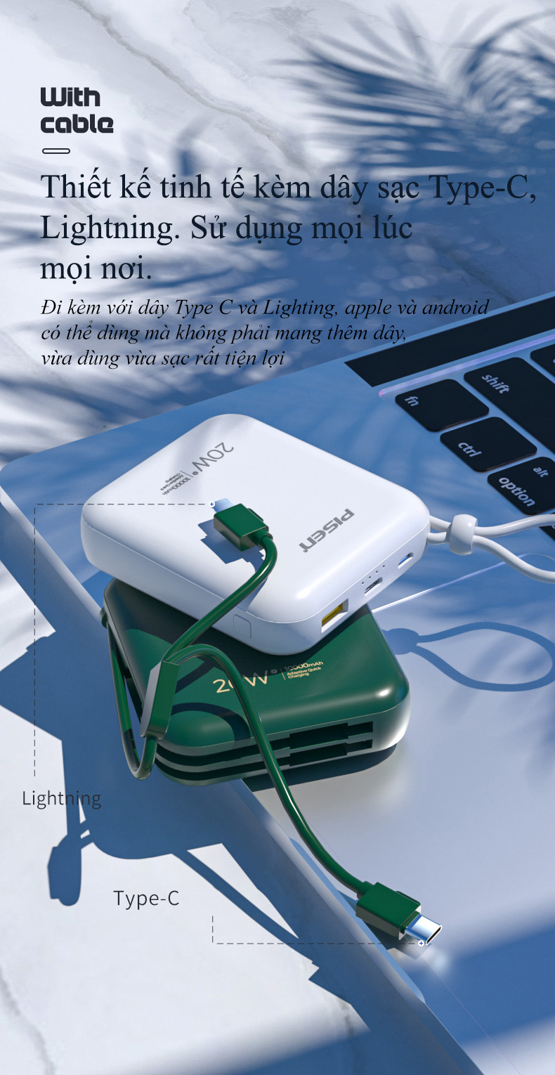 Tến sản phẩm: Sạc dự phòng PISEN QUICK D156 10000mAh 20W - Kèm dây cắm Type-C