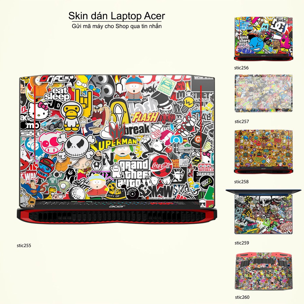 Giới thiệu Skin dán Laptop Acer in hình sticker bomb (inbox mã máy cho Shop)