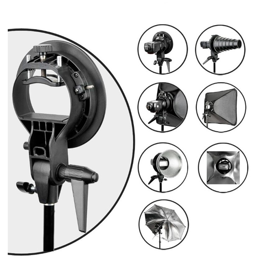 Sử dụng adapter Godox S-shape chắc chắn, có thể kết hợp với : L-type Bowens, T-type Bowens, L-type speed ring, T-type speed ring
