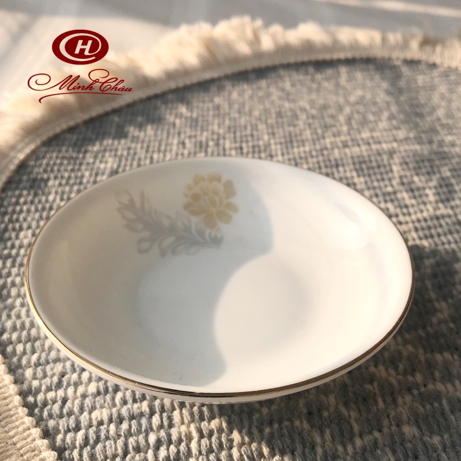 Giới thiệu [Sứ Siêu Nhẹ] Đĩa Chấm Sứ Xương Hoa Kẻ Vàng - Sứ Minh Châu - Bone-D02KVH