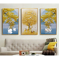 Bộ tranh 3 Bức - Tranh treo tường phòng khách- Tranh 3D Hiện Đại HD 39765 /Gỗ MDF cao cấp phủ kim sa/ Chống ẩm mốc, mối mọt/Bo viền góc tròn