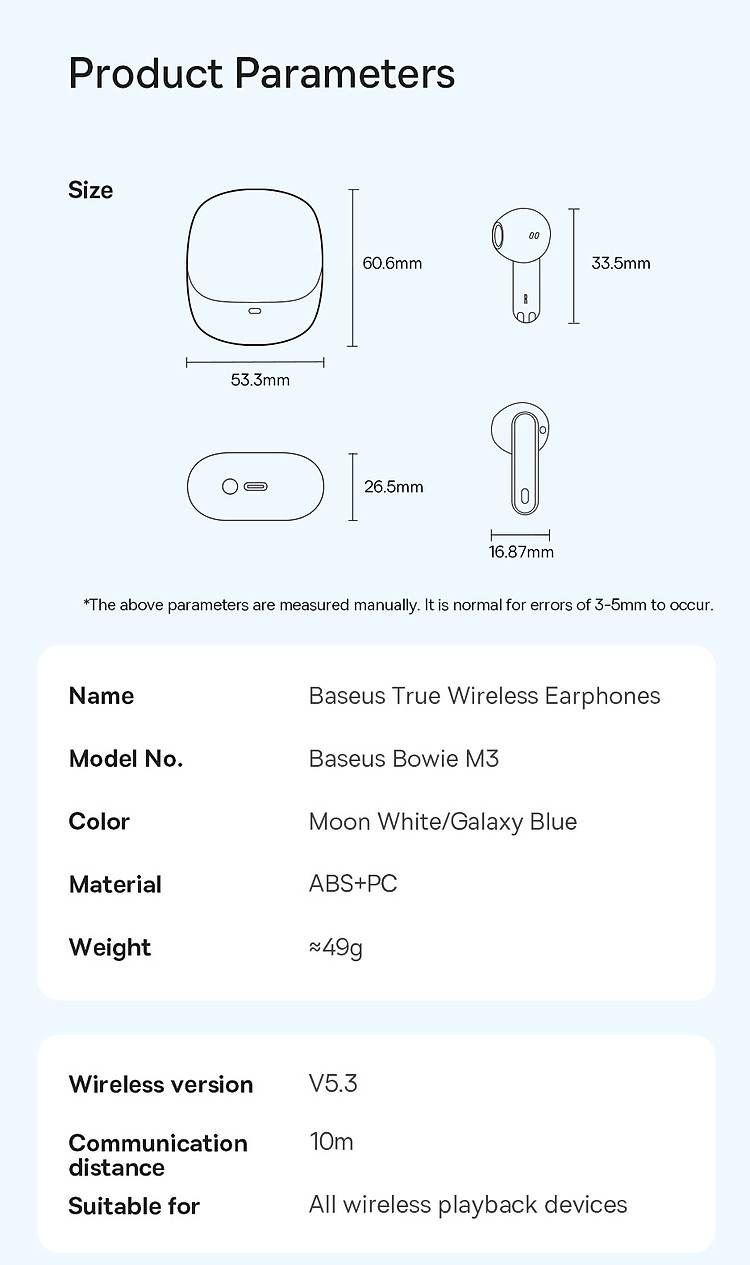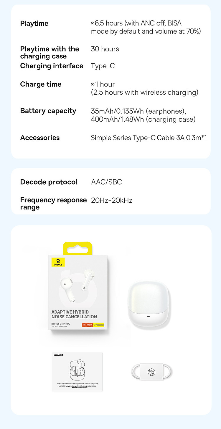 | Tên | Tai Nghe Bluetooth Baseus Bowie M3 True Wireless Earphones |