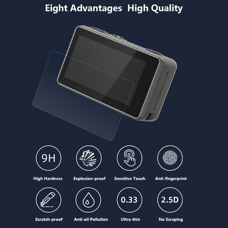 Những tấm dán này có độ cứng cực cao, có thể chống chịu được nhiều va đập, chống xước hoàn toàn, bảo vệ gần như tuyệt đối khỏi các tác động vật lý. Mặc dù vậy nhưng chúng lại có độ dày rất nhỏ, chỉ khoảng 0,33mm, công thêm với chất kính trong suốt không vẩn đục, bạn sẽ không nhận thấy nhiều khác biệt trên Osmo Action trước và sau khi được dán màn.