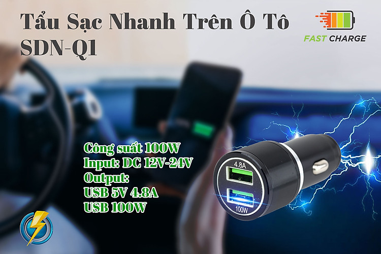 - Tẩu Sạc Nhanh Trên Ô Tô 2 Cổng USB 100W 4.8A CIND SDN-Q1 được thiết kế với chất liệu an toàn, trang bị tính năng bảo vệ quá dòng, quá áp, cóc sạc giúp rút ngắn thời gian sạc và đảm bảo an toàn cho các thiết bị cùng cả hệ thống điên trên xe.