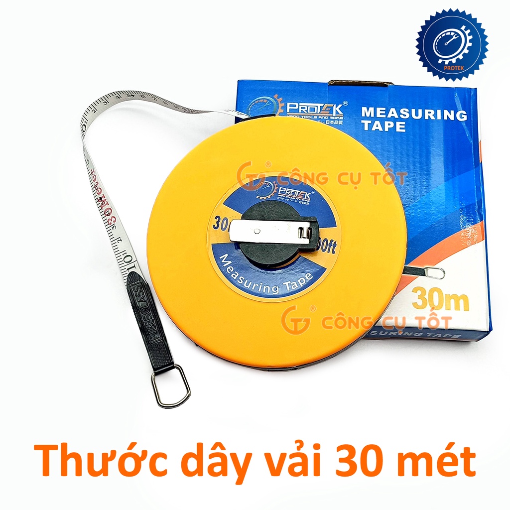 Thước dây Protek làm từ vải và sợi thủy tinh có độ bền cao, không rách, không bị kẹt trong quá trình sử dụng. Bề mặt thước mềm mại với các số đo và vạch chia được in rõ ràng, sắc nét. Người dùng có thể dễ dàng kéo dài và thu gọn thước nhờ cơ cấu bánh xe và núm vặn. Sản phẩm có thể đo lường được cả đường trẳng và đường cong, thích hợp sử dụng trong lĩnh vực xây dựng, thi công công trình, những nơi cần đo đạc các chi tiết, đồ vật có tổng chiều dài lớn.