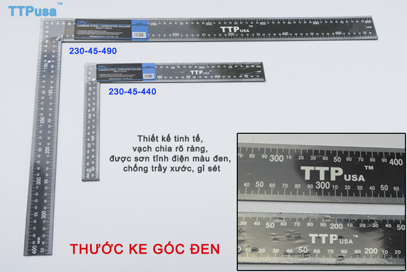 - Được sản xuất trên dây chuyền công nghệ tiên tiến, Thước ke vuông đen TTPusa sẽ đem đến cho bạn giá trị chính xác nhất. Đây chắc chắc sẽ là người bạn đồng hành tuyệt vời dành cho bạn.
