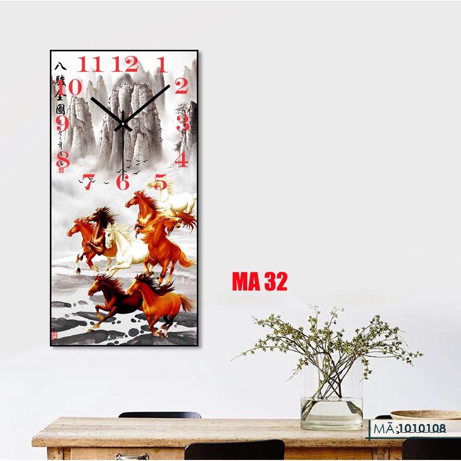 Tranh Đồng hồ treo tường trang trí phòng khách, phòng ngủ kim trôi không gây tiếng ồn In hình 3d, đồng hồ tranh gỗ treo tường trang trí decor