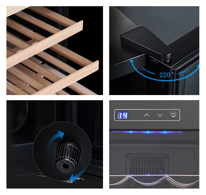 - Hệ thống làm mát vòng tròn 360, làm lạnh toàn bộ các chai vang từ mọi góc cạnh. Điều chỉnh nhiệt tự động, tạo môi trường lý tưởng như trong hầm ủ vang.