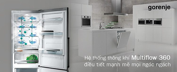 Không khí tươi mát sau khi ion hóa qua hệ thống thông khí Multiflow 360 được lưu thông đến từng ngõ ngách, đưa oxy đến mọi nơi trong tủ lạnh Gorenje NRK62JSY2B.