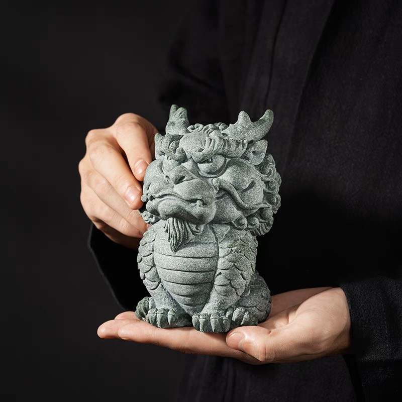 Tượng TIỂU KỲ LÂN Đá Sa Thạch Xanh trang trí bàn trà, bàn làm việc, quà tặng ý nghĩa