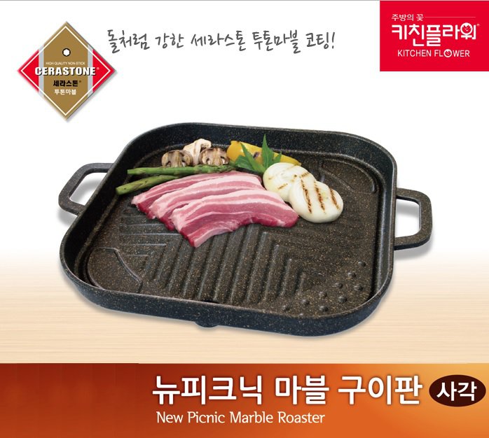 - Chảo nướng hợp kim phủ đá hoa cương chống dính siêu bền, giúp dễ dàng vệ sinh, làm sạch.