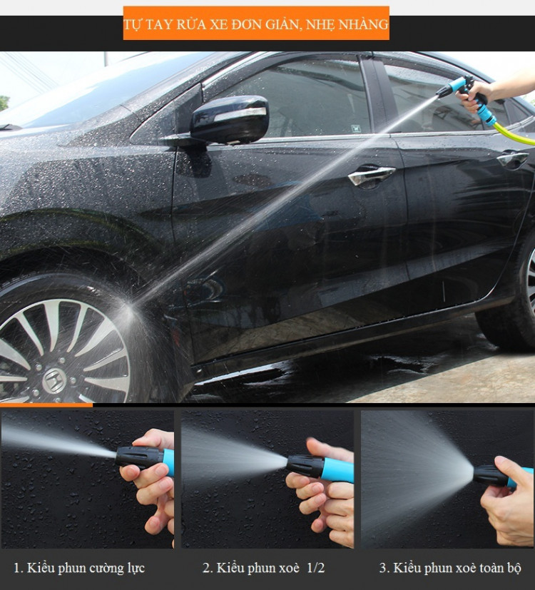 Việc rửa xe, tưới cây, phun xịt vệ sinh nhà cửa của bạn sẽ trở nên cực kỳ đơn giản, nhẹ nhàng. Ống nước Lionking GS125 có kết cấu 3 lớp, không bị gập, không bị xoắn trong quá trình sử dụng. Vòi xịt nước được làm bằng chất liệu nhựa ABS độ bền cao, sử dụng dễ dàng, có thể điều chỉnh các kiểu phun nước khác nhau.