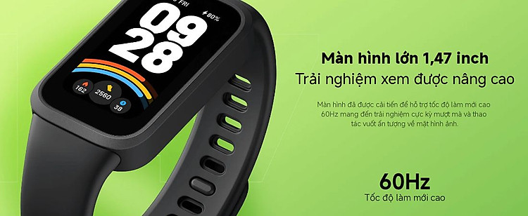 Một điểm cộng lớn là Mi Band 9 Active cung cấp hơn 100 giao diện mặt đồng hồ, từ đơn giản đến phức tạp, cho phép người dùng thay đổi linh hoạt theo sở thích và tình huống. Bề mặt màn hình còn được phủ kính cường lực, giảm nguy cơ trầy xước hoặc nứt vỡ khi va chạm.