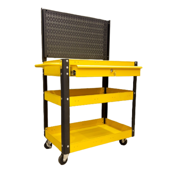 Xe đẩy 3 ngăn 1 hộc kéo màu vàng 72cm kèm vách lưới màu đen