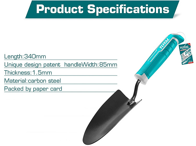 - Cây xẻng xúc đất làm vườn 340mm TOTAL THFTT858 là một công cụ đáng tin cậy và hiệu quả cho công việc làm vườn, trồng cây, trồng hoa trong gia đình